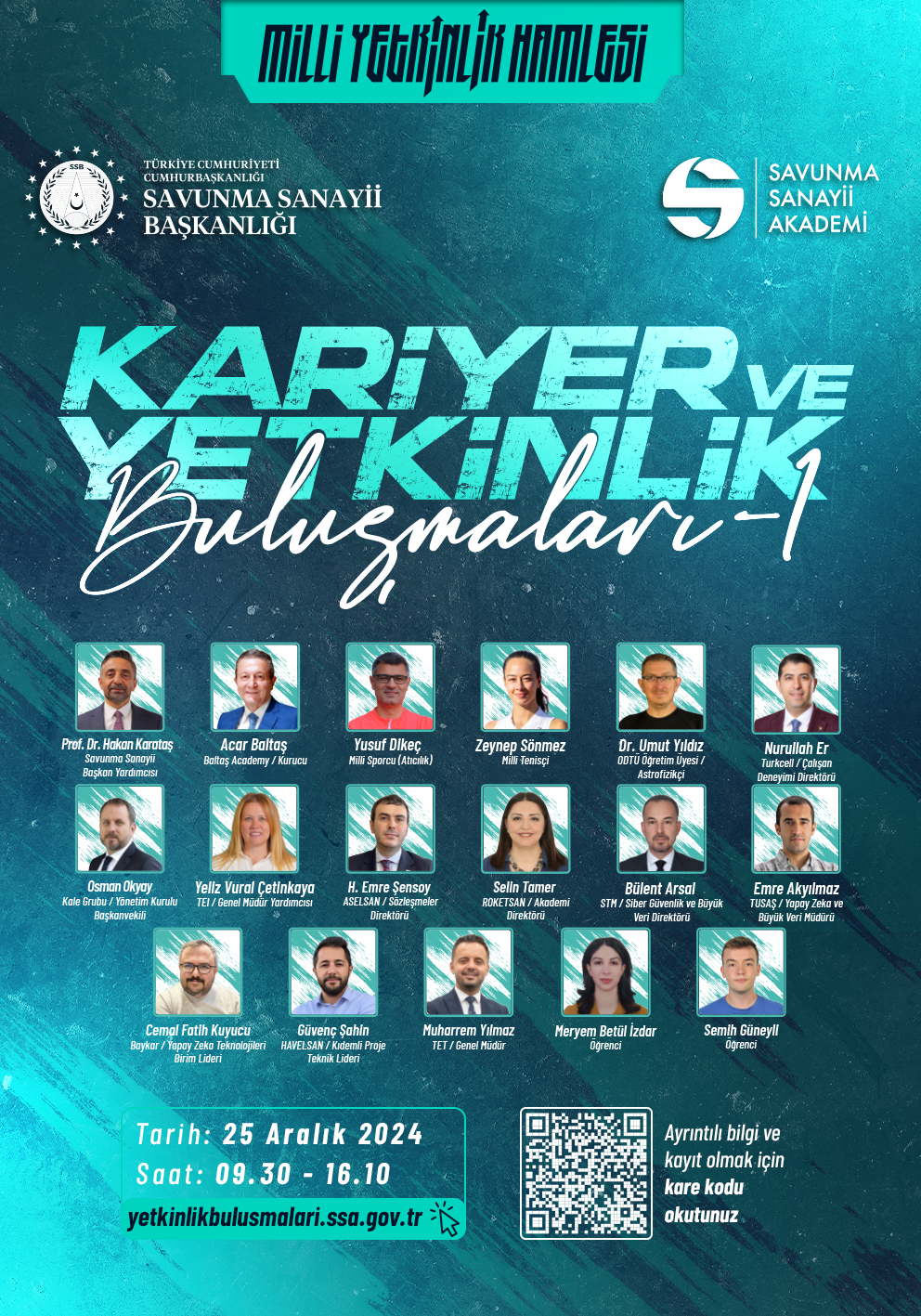 Türkiye Cumhuriyeti Cumhurbaşkanlığı Savunma Sanayii Başkanlığı tarafından düzenlenenecek olan 'Kariyer ve Yetkinlik Buluşmaları' etkinliğine kendini geliştirmek, kariyer ve yetkinlik konularında bilgi almak, savunma sanayii sektöründeki kariyer fırsatlarını öğrenmek isteyen tüm gençlerimiz bu buluşmaya davetlidir.
